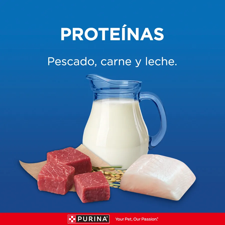 Una nueva nutrición es fundamental para proteger la salud de los gatos . Es por eso que desarrollamos PURINA® CAT CHOW® GATITOS PESCADO, CARNE Y LECHE, desde el destete hasta 12 meses con DEFENSE PLUS, hecho con todos los nutrientes que tu gatito necesita para favorecer un crecimiento sano, y mejorado con la inclusión de un prebiótico natural.