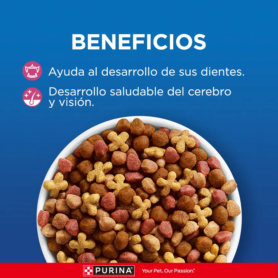 Maíz, harina de soya, harina de carne y hueso de cerdo, harina de subproductos de pollo, gluten de maíz, aceite de pollo, harina de plumas de pollo, hidrolizado de hígado de pollo y/o cerdo con TSPP en polvo, cloruro de sodio, harina de pescado, ácido fosfórico, colorante natural caramelo, inulina, suplementos vitamínicos antioxidantes, cloruro de colina, metionina, premezcla mineral quelada, taurina, vitamina E, trigo, harina de algas (Schizochytrium sp), vitamina C, colorante natural rojo carmín, leche en polvo bovina, espinaca deshidratadas, levadura de cerveza (Saccharomyces cerevisiae), cloruro de potasio, L-lisina, carbonato de calcio.