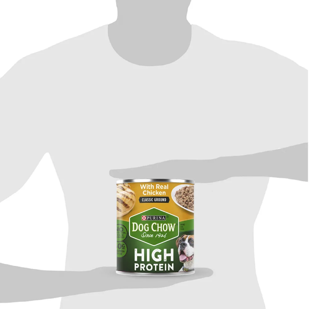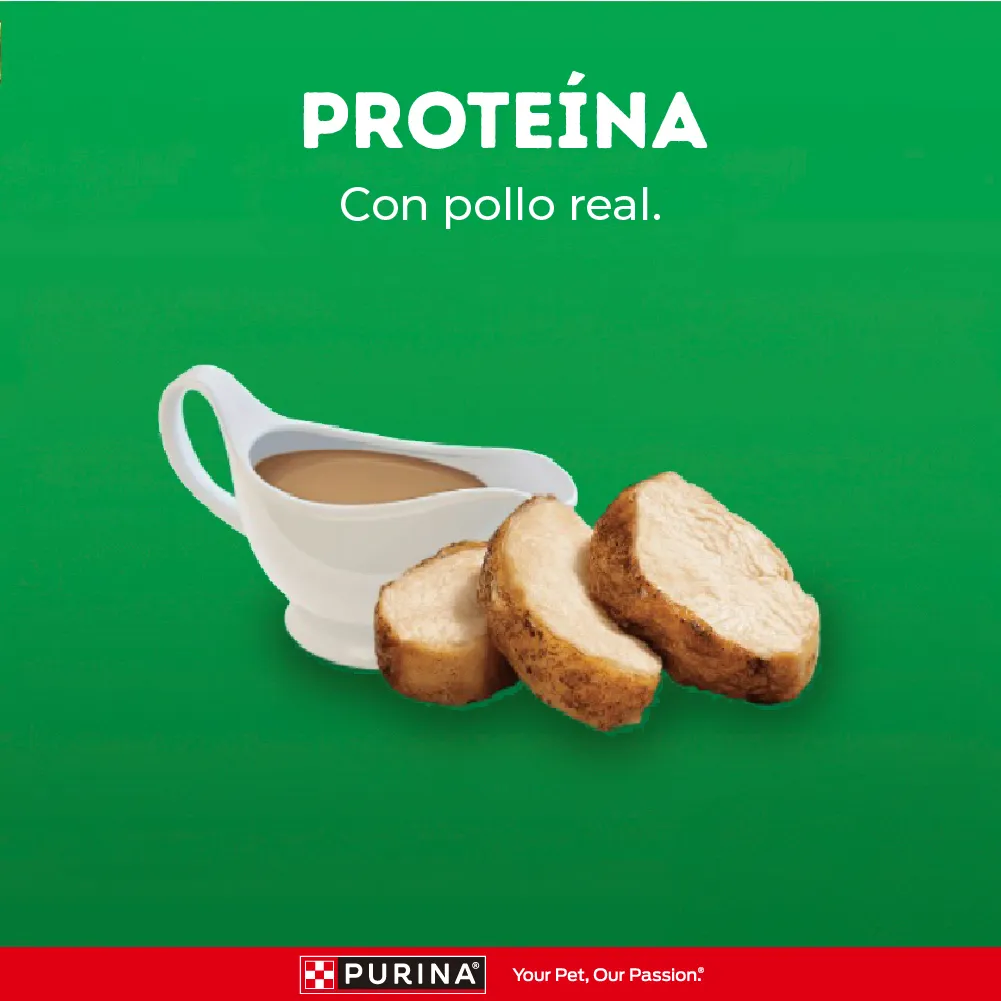 Alimento húmedo para perros Dog Chow High Protein, tu mascota disfrutará de trozos jugosos hechos con pollo real en una saborosa salsa, contiene 40g de proteína por lata. Y con ingredientes de alta calidad, sin sabores artificiales ni conservantes, una nutrición 100% equilibrada para perros adultos.