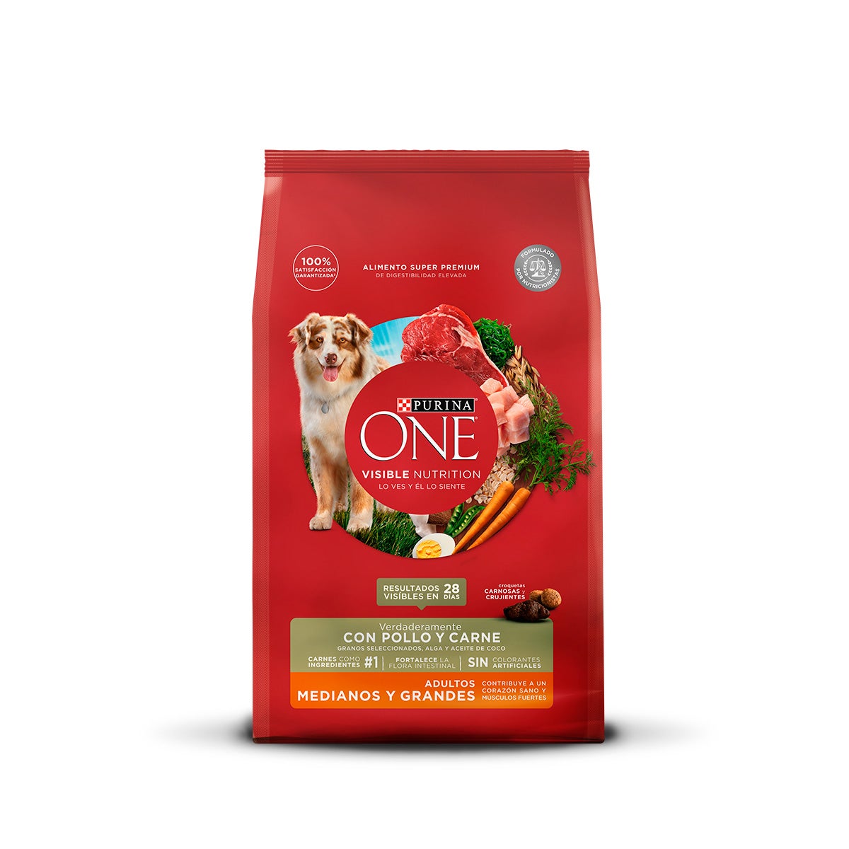 PURINA® ONE® Adultos Medianos y Grandes con Carne es nutrición superior para tu mascota. Formulado por nutricionistas, Purina® ONE® contiene Carne Real como ingrediente #1, granos seleccionados, alga y aceite de coco en combinaciones óptimas para la salud de tu mascota, con resultados visibles en 28 días.