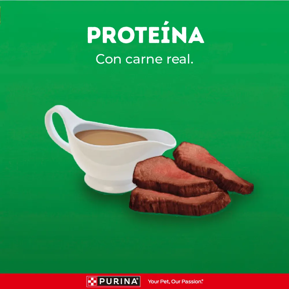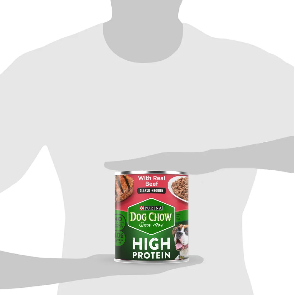 Alimento húmedo para perros Dog Chow High Protein, tu mascota disfrutará de trozos jugosos hechos con carne real en una saborosa salsa, contiene 40g de proteína por lata. Y con ingredientes de alta calidad, sin sabores artificiales ni conservantes, una nutrición 100% equilibrada para perros adultos.
