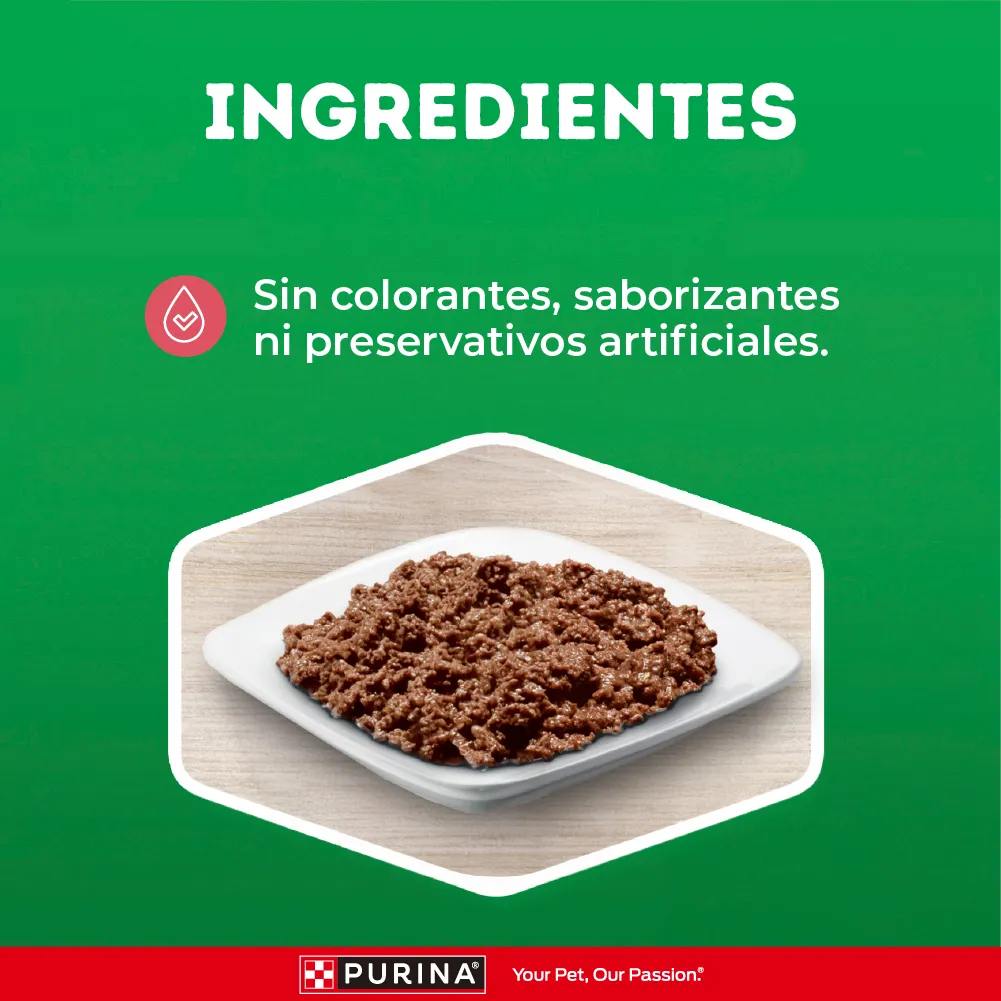 AGUA SUFICIENTE PARA PROCESO, POLLO, SUBPRODUCTOS DE CARNE, HÍGADO, HARINA DE SOYA, CARNE, GOMA GUAR, MINERALES ICLORURO DE POTASIO, SULFATO DE ZINC, SULFATO FERROSO, SULFATO DE COBRE, SULFATO DE MANGANESO, IODURO DE POTASIO, SELENITO DE SODIO], COLORANTE AÑADIDO, FOSFATO TRICÁLCICO, CARRAGENINA, CARBONATO DE CALCIO, VITAMINAS [SUPLEMENTO DE VITAMINA E, NIAGINA (VITAMINA B-3), MONONITRATO DE TIAMINA (VITAMINA B-1), PANTOTENATO DE CALCIO (VITAMINA B-5), CLORHIDRATO DE PIRIDOXINA (VITAMINA B 6), SUPLEMENTO DE VITAMINA B-12, SUPLEMENTO DE RIBOFLAVINA (VITAMINA B-2), SUPLEMENTO DE VITAMINA A, ÁCIDO FÓLICO (VITAMINA B-9), SUPLEMENTO DE VITAMINA D-3, BIOTINA (VITAMINA B-7)], CLORURO DE COLINA. A412518