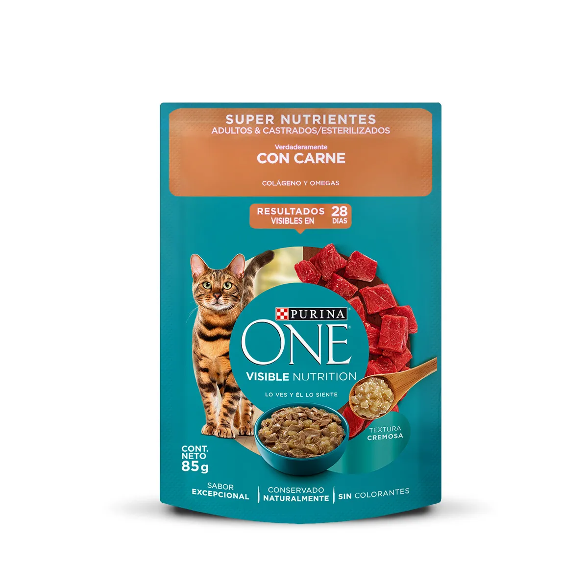 Alimento húmedo para Gato Purina One Adulto y Esterilizado Super Nutrientes con Carne Pouch